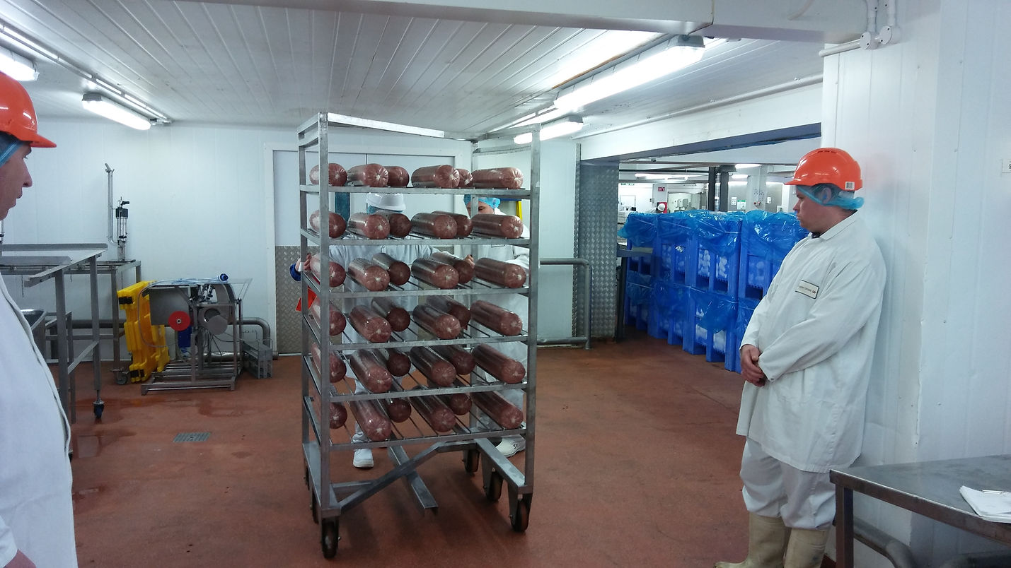 The afternoon kicked off with Gareth Milner observing tasks and loads across the factory floor environments during a walk around with the attendees. Before this Course in 2018, Gareth and the Osteopathic Solutions Ltd Team had been to abattoir and meat processing sites like this with Tulip Foods (see review above), ABP Food Group, Cranswick Foods et cetera (see 5-star reviews down this page). As Manual Handling Risk and Ergonomic Assessment had been started with the food factory task videos in the classroom, Gareth observed Manual Handling job specific tasks with the attendees whilst discussing the postural and handing issues with the Task, Individual, Load and Environment (TILE). The first Manual Handling task was transferring the poles of pork thighs (shown in the photo above) from the lorries into the factory.​